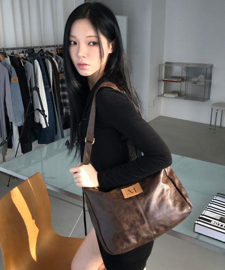 MUCENT MERIN GOLD LINE LEATHER SHOULDER BAG-2 COLORS