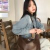 MUCENT POT DOUBLE WRINKLE LEATHER SHOULDER BAG-2 COLORS