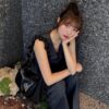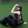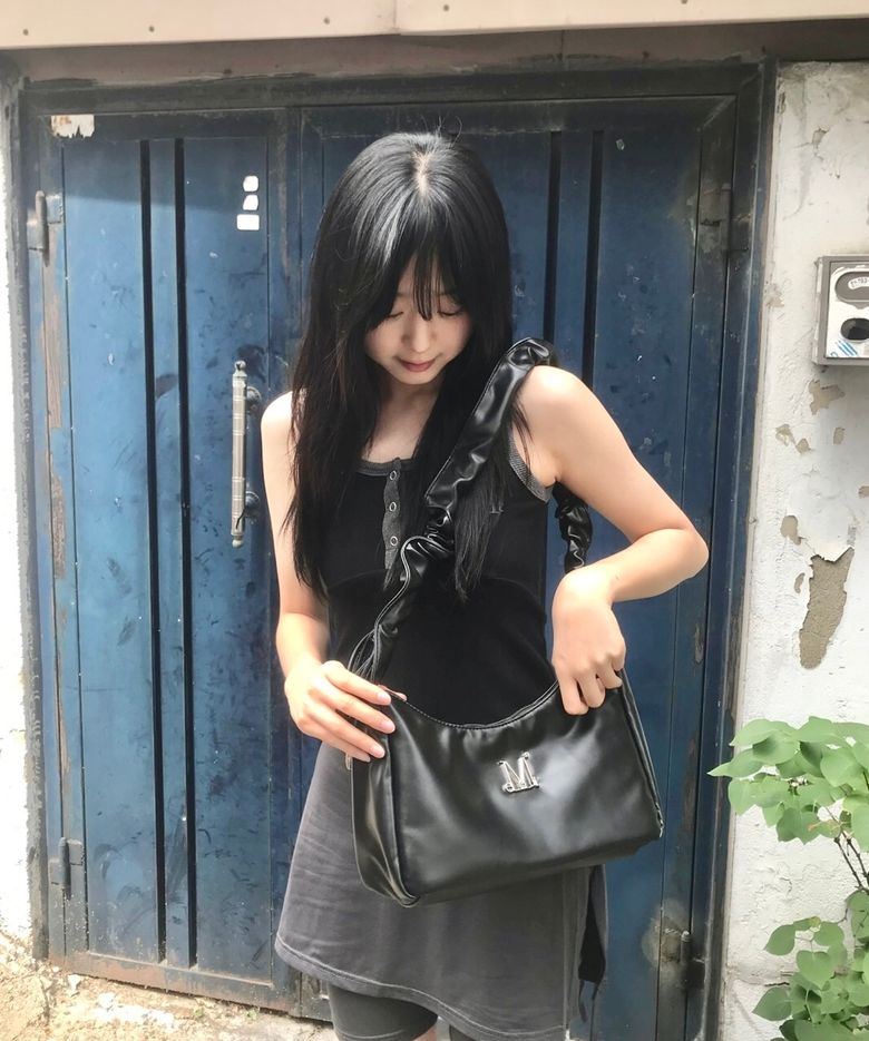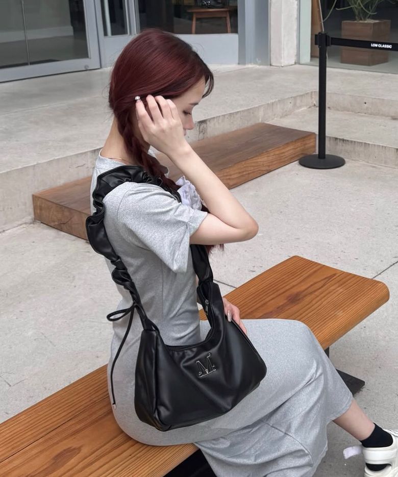 MUCENT ROUSSEL METAL LOGO SHIRRING CROSS BAG UNISEX