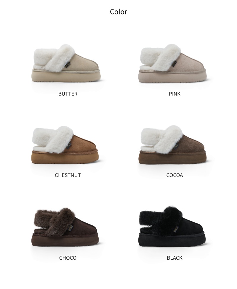 | COLOR | BUTTER, PINK, CHESTNUT, COCOA, CHOCO, BLLACK |